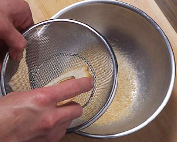 もどしたきんこを椀汁で一度含ませ、水分をよく切っておきます。