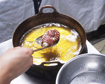 高温の油に落としますので雑菌が残る心配はないと思いますが、たこの吸盤には雑菌や汚れがたまりやすいので、水洗いはしっかり行ってください。